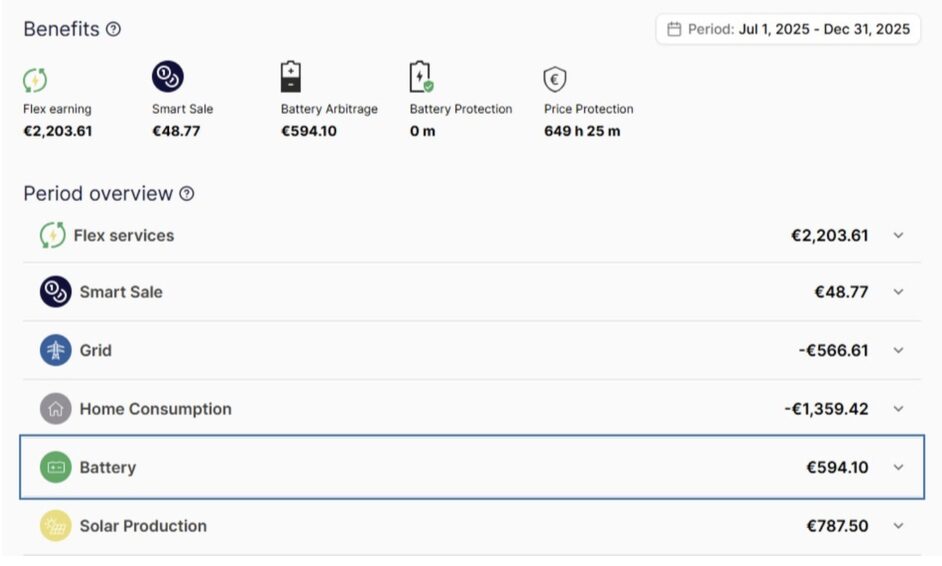 These results come from a real operating household battery system over a fixed period: July 1, 2025 – December 31, 2025. Six months of realized value.